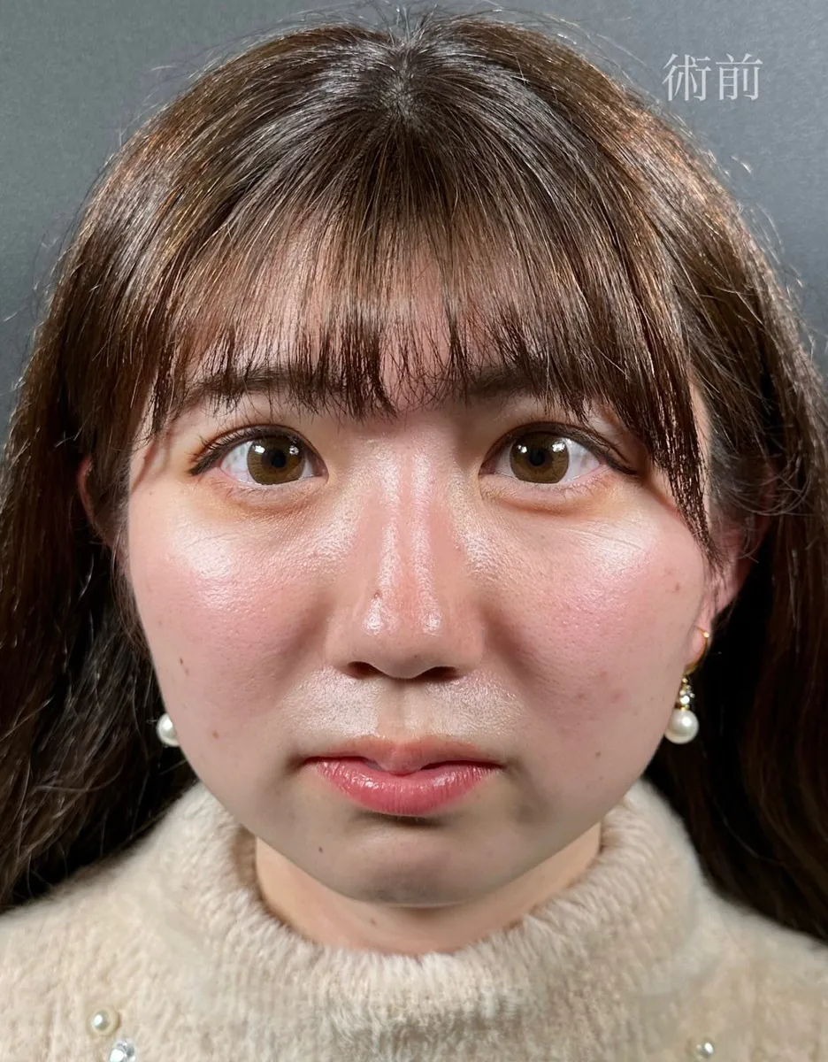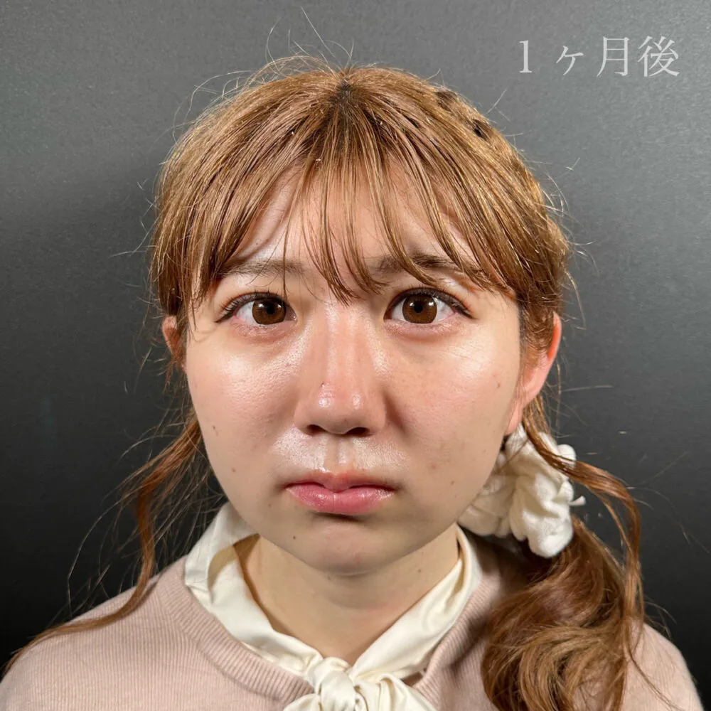 1カ月後のお写真ですが、やや腫れが残っているため、フェイスラインのシャープさは効果があるものの、まだダウンタイムは続くというご説明をさせていただきました。