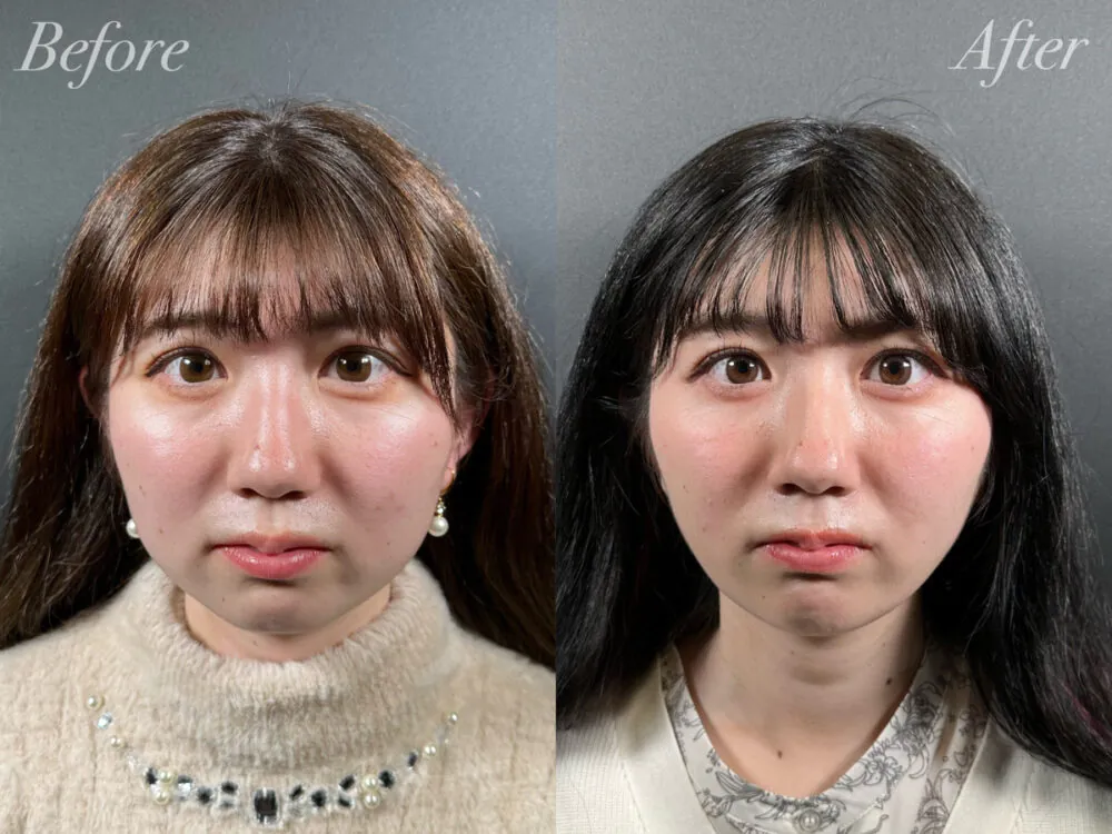 3カ月後のお写真です。フェイスラインがすっきりして、エラの張りも改善されましたね。