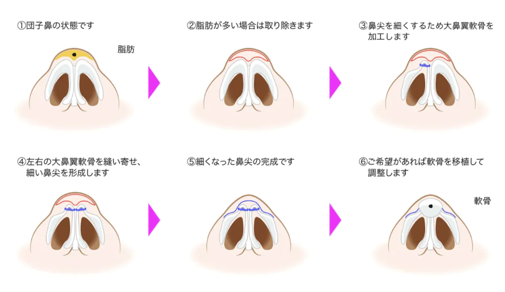 団子鼻を治す手術には鼻尖形成があります。
