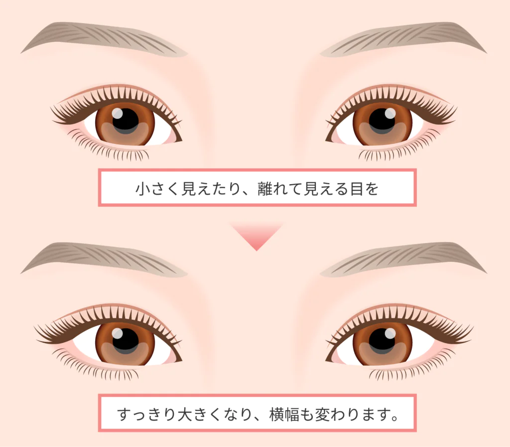 対して、W法は、若干傷跡は大きくなりますが、目の縦幅も広がるというメリットがあります。