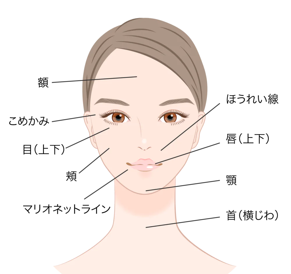 (口角・ゴルゴライン・目の上・目の下・ほうれい線・マリオネットライン・眉間)