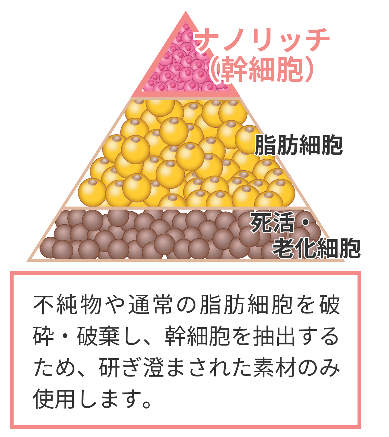 皮膚の薄い目元など、滑らかな仕上がりをご希望の方には、さらに高純度な脂肪細胞を抽出する「ナノリッチ」もございます。