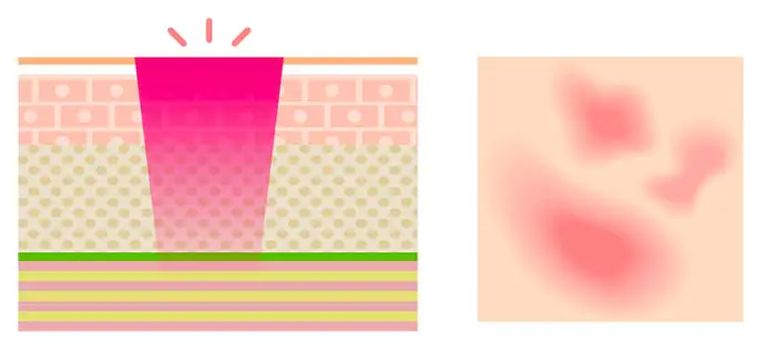 ニキビの炎症を抑えることで、ニキビの悪化を防ぎ、ニキビ跡(凹み)を最小限に抑えることができます。痛みはほとんどありません。
