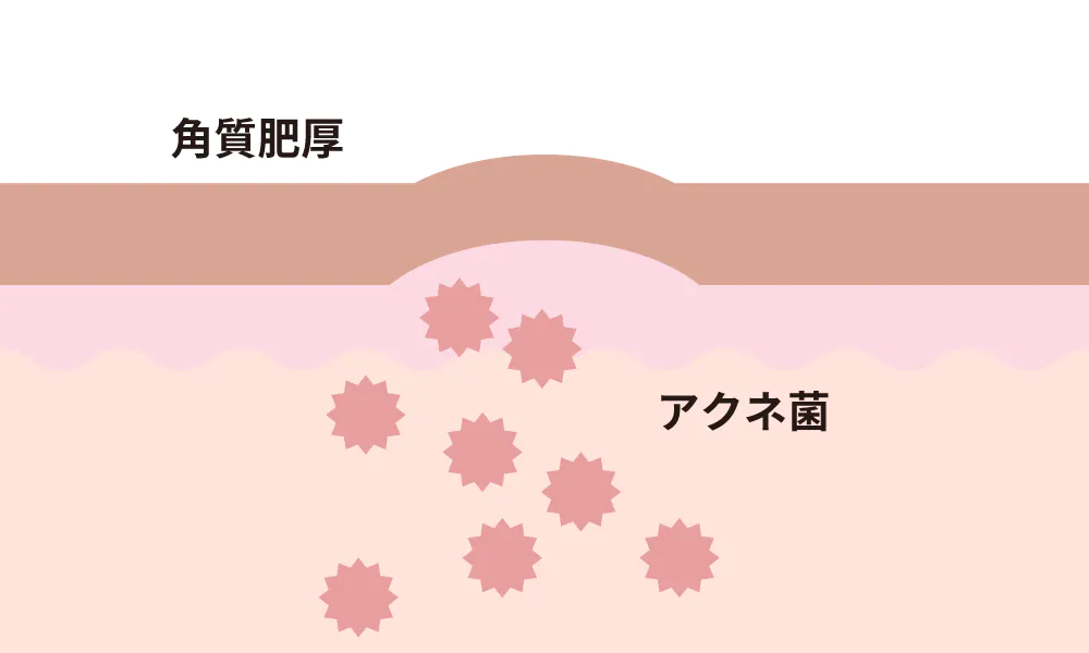毛穴が古い角質により詰まったり(角質肥厚)皮脂汚れにより塞がると、ニキビが発生・悪化していきます。