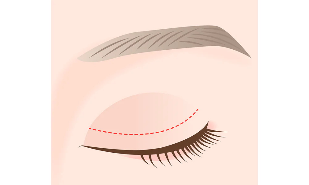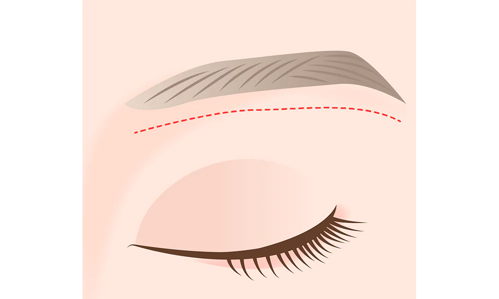 目の上の余分な皮膚のたるみと脂肪を眉毛の下のラインに沿って切除することで、目の上のしわ、たるみの症状をしっかり改善させる手術方法です。