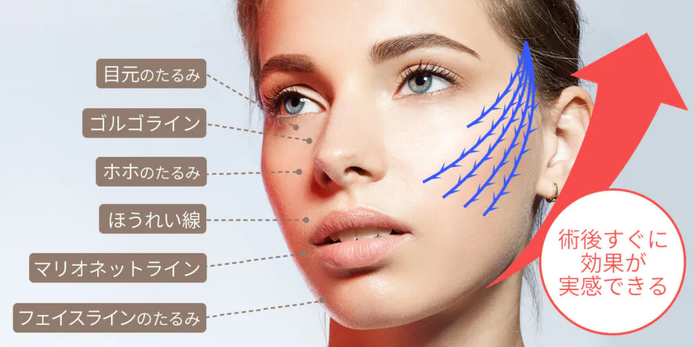 施術時間も15分程度とスピーディーで、術直後からメイクも可能なため、手軽にリフトアップ効果を得たい方には最適です。