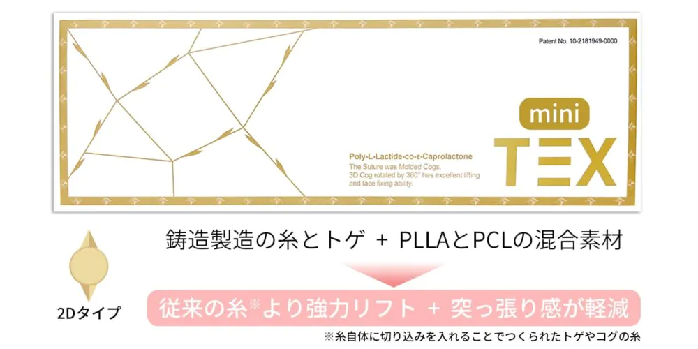 R式ティアラリフトは、2Dタイプのリフティング用スレッド(18G)を使用します。超音波で圧縮された糸は強度が高く、弾性があるためたるみを自然に引き上げます。持続力は1〜2年と個人差がありますが、ほうれい線やマリオネットラインの改善に特に効果的です。短期間で自然なリフトアップを求める方に適した施術です。