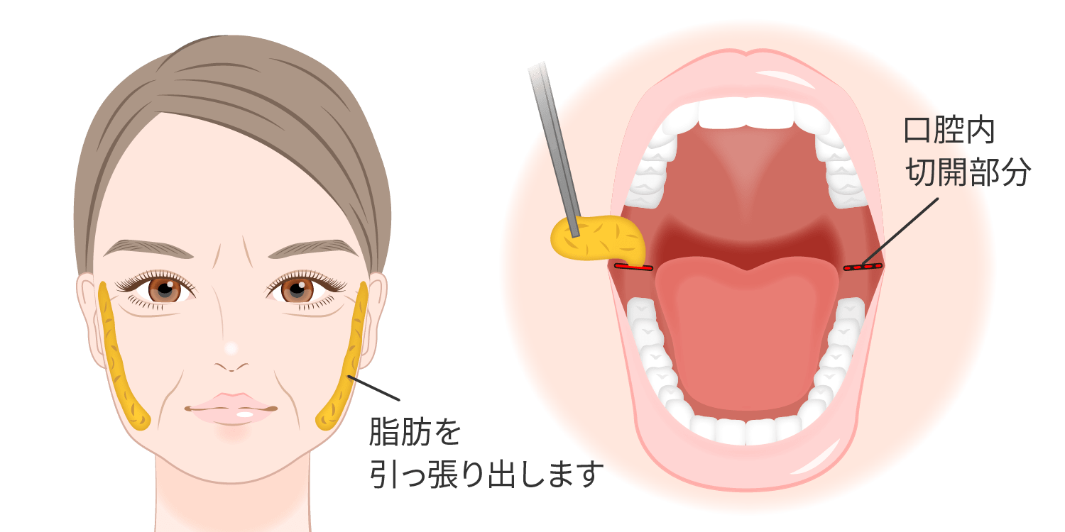 頬の脂肪には、浅い層にあるもの(皮下脂肪)と深い層にあるもの(バッカルファット)があります。